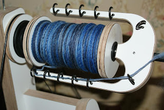 nou dat is een leuk spinnewiel, wat een moderne vormgeving! mag ik eens proberen